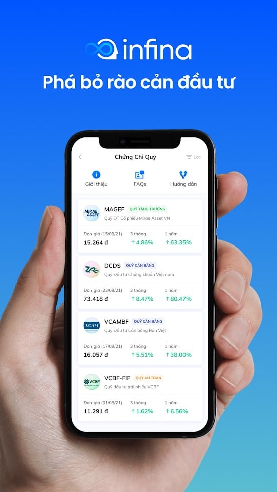 1口5万ドン(約250円)から投資できるサービスで、Infinaよりもさらに少額から金融商品などに投資できるサービスです。投資に関する深い知識を必要せず気軽に投資できることを打ち出しています。