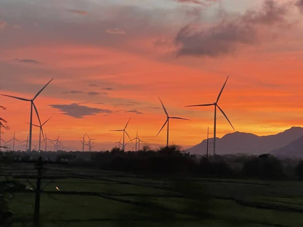 ひとつは、風力発電所が立ち並ぶニントゥアン、ビントゥアン沿岸です。ベトナムも電力源を化石燃料から再生可能エネルギーへと転換を進めています。2021年までに建設された再生可能エネルギーによる発電所には固定価格買取制度(FIT)が適用されるとあって、ベトナムでは風力発電所、太陽光発電所が次々と建設されました。結果、ベトナムの電源構成の2割は風力、太陽光など再生可能エネルギーとなるまでにいたり、世界的にも再生可能エネルギーの投資額で世界第8位の地位を占めています。ニントゥアン省には元々原子力発電所が建設される予定でしたが、東日本大震災による福島原発事故後、ベトナム国会で計画中止の決定がなされた場所です。風力発電機がいくつもならぶニントゥアンの平原に世界のありうべき未来をみた気がしました。