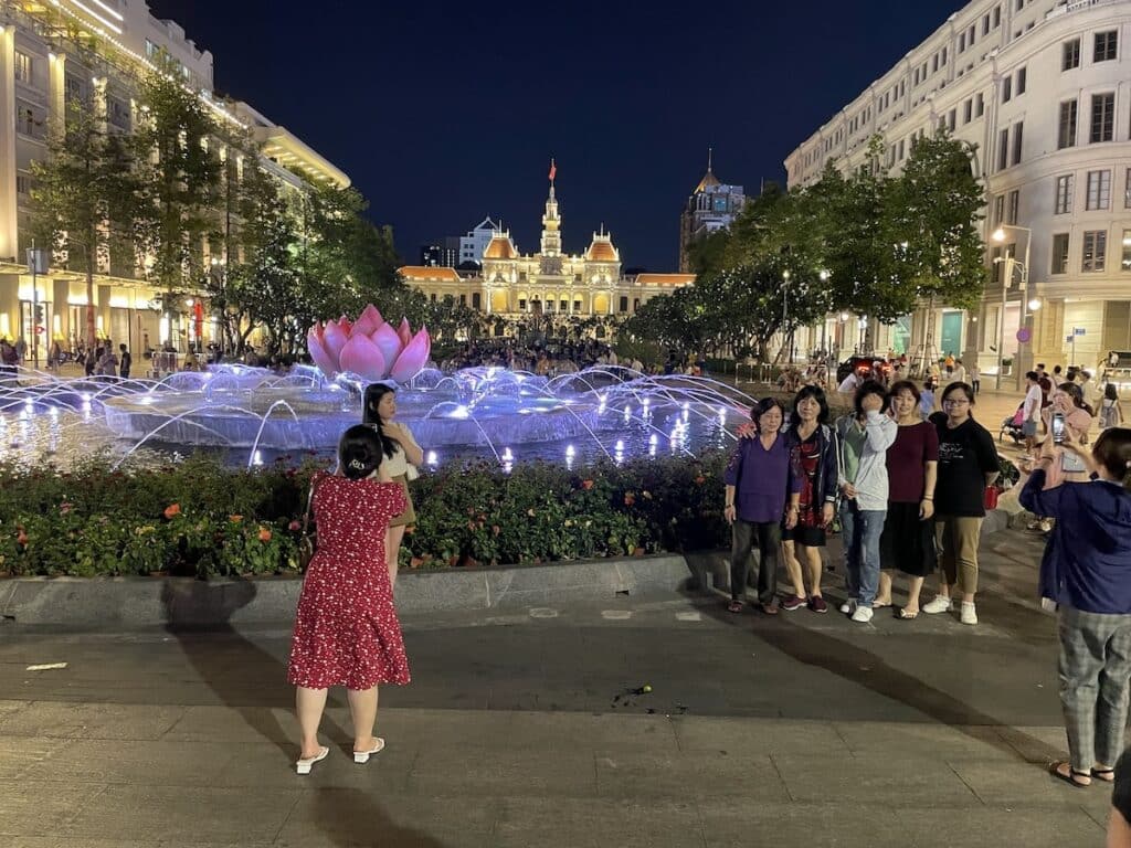 ホーチミン市であれば、夜のグエン・フエ通り沿い。通りの真ん中は遊歩道になっていて、夕涼みに訪れる人たちで賑わいます。大道芸人やおもちゃを売るひとたちもいて、さながら縁日のようです。ホーチミン市人民委員会の建物を背に歩くと、通りの先にはサイゴン川があります。川のほとりにはカフェがたくさんあります。ホテルのルーフトップバーで川の風に吹かれながらドリンクを傾けるのも一興です。