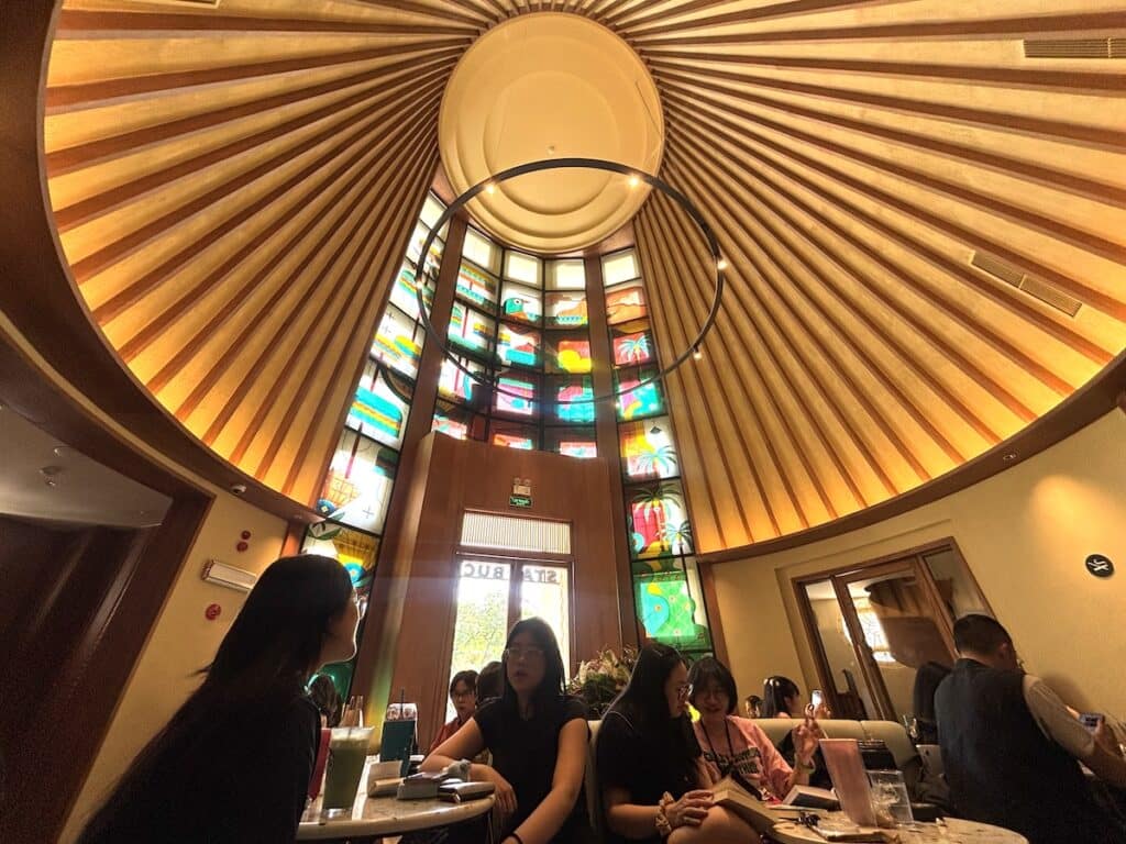 店内はノンラー(すげ笠)を連想させるような天井のデザインと、高壁のステンドグラスから差し込む光が、幻想的な空間を作っています。ここではスターバックスベトナム限定メニューのココナッツコーヒーをオーダーすることができます。ただ、まだオープンして間もないこと、席数が限られていることから、席の確保が難しい状況。どうしても歴史ある建物でコーヒーを楽しみたいという方は、朝早い時間など、人の少ない時間を狙って訪問するのがおすすめです。