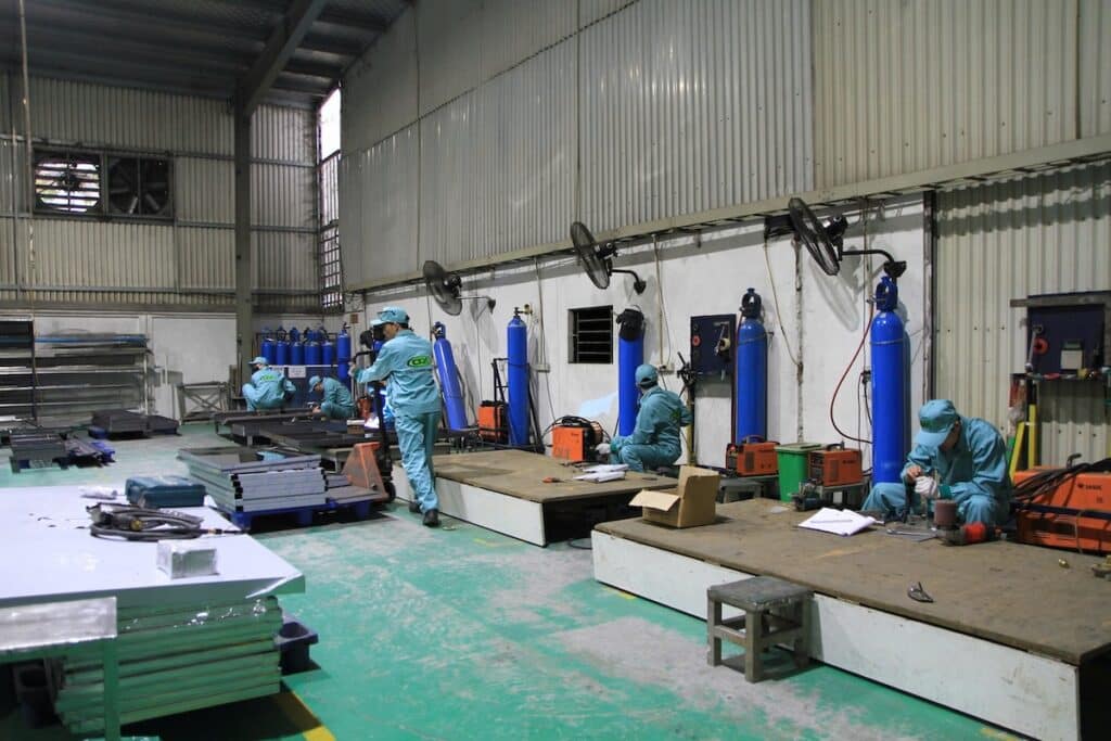 同社は2023年に株式会社として登記されたが、実はすでに小さな工場として2023年の時点で5、6年の生産経験を有していた企業だ。立地はハノイ市の郊外、ホアイドックにあり、ミーディン国立競技場から15分の距離にある。